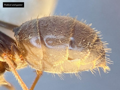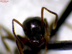 通体黑褐色;体型小而匀称;与黄毛蚁近缘但体色不同;触角柄节长度超过眼后缘