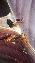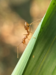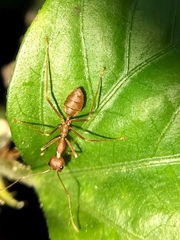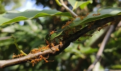 黄猄蚁(学名直译为"祖母绿织叶蚁")是世界上最著名的织叶蚁,也是蚁亚科中最具标志性的物种之一。工蚁用幼虫吐的丝将活的树叶缝合在一起构筑精美的巢穴,这一独特行为使其成为昆虫行为学研究的明星物种。